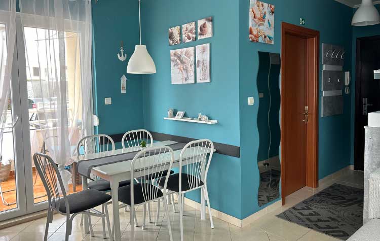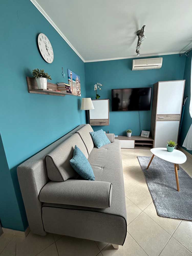 A kék strand 350 m-re helyezkedik el apartmanunktól